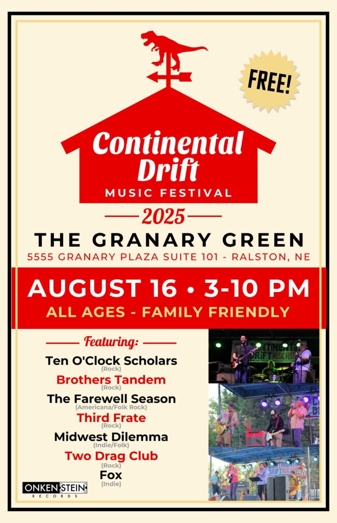 Continental Drift Music Festival is a one-day, grassroots music festival held Nebraska. It has been running since 2012, making it one of Nebraska’s longest-running music festivals. Originally held at Riverwest Park in Omaha, it relocated to the Fremont Lakes State Recreation Area in 2017 and was held there for seven years. Now, it’s back in the heart of Omaha at The Granary in Ralston.
